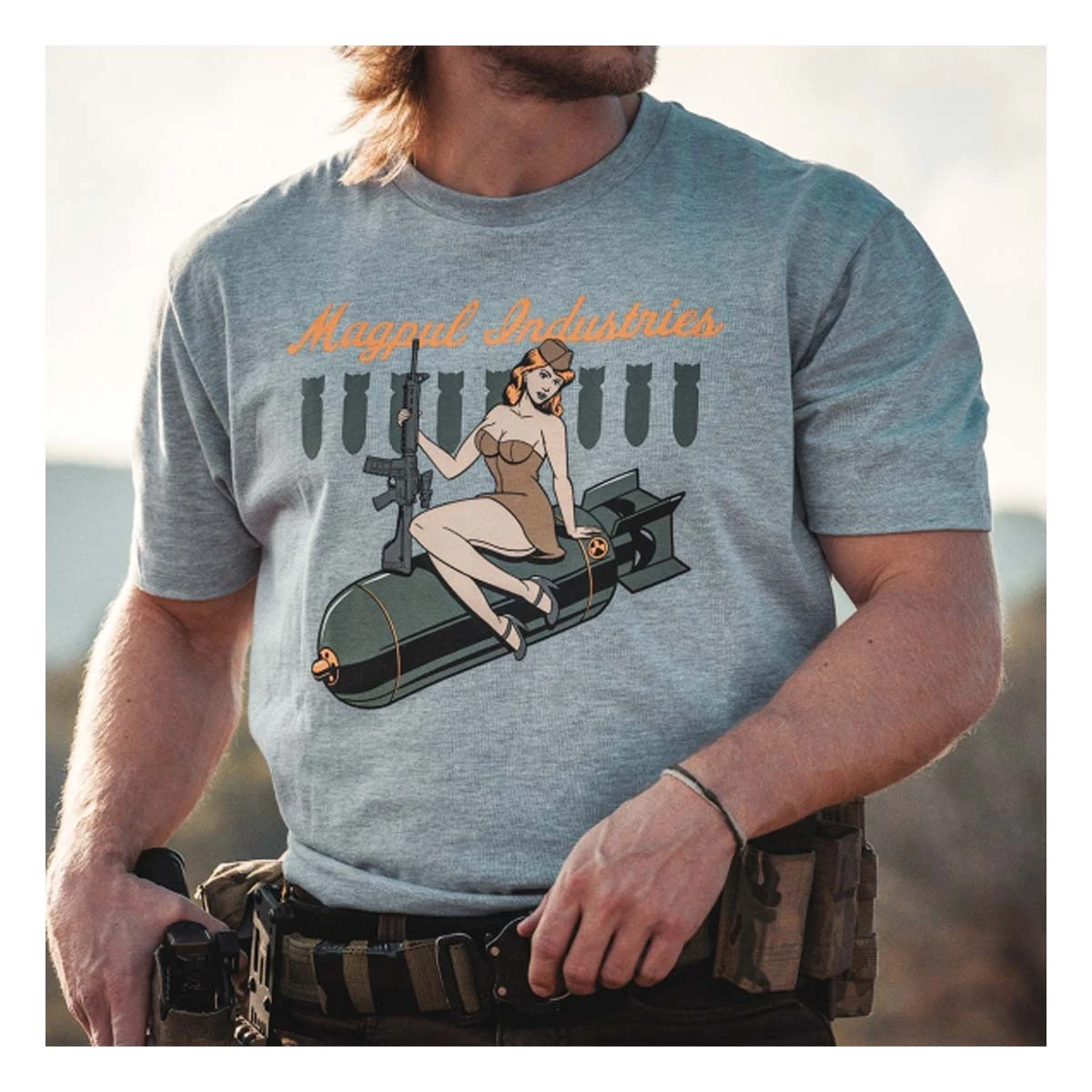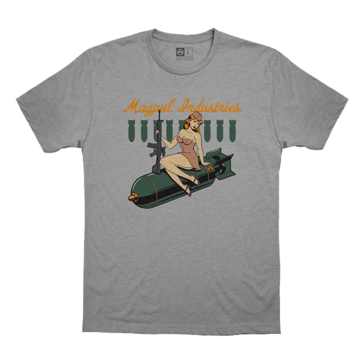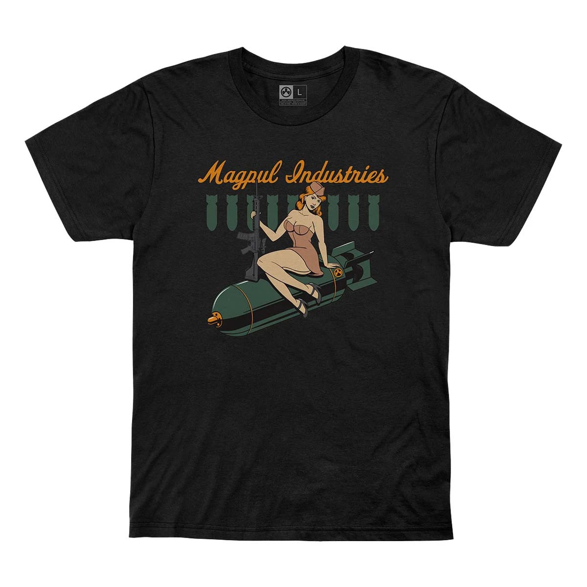 Since we can’t sell you fighter jets, we added a throw-back nose art design to our comfortable cotton t-shirt.